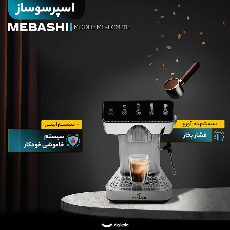 اسپرسوساز مباشی مدل ME-ECM2113 ظرفیت ۱.۵ لیتر با فیلتر استیل اصلی گارانتی دار