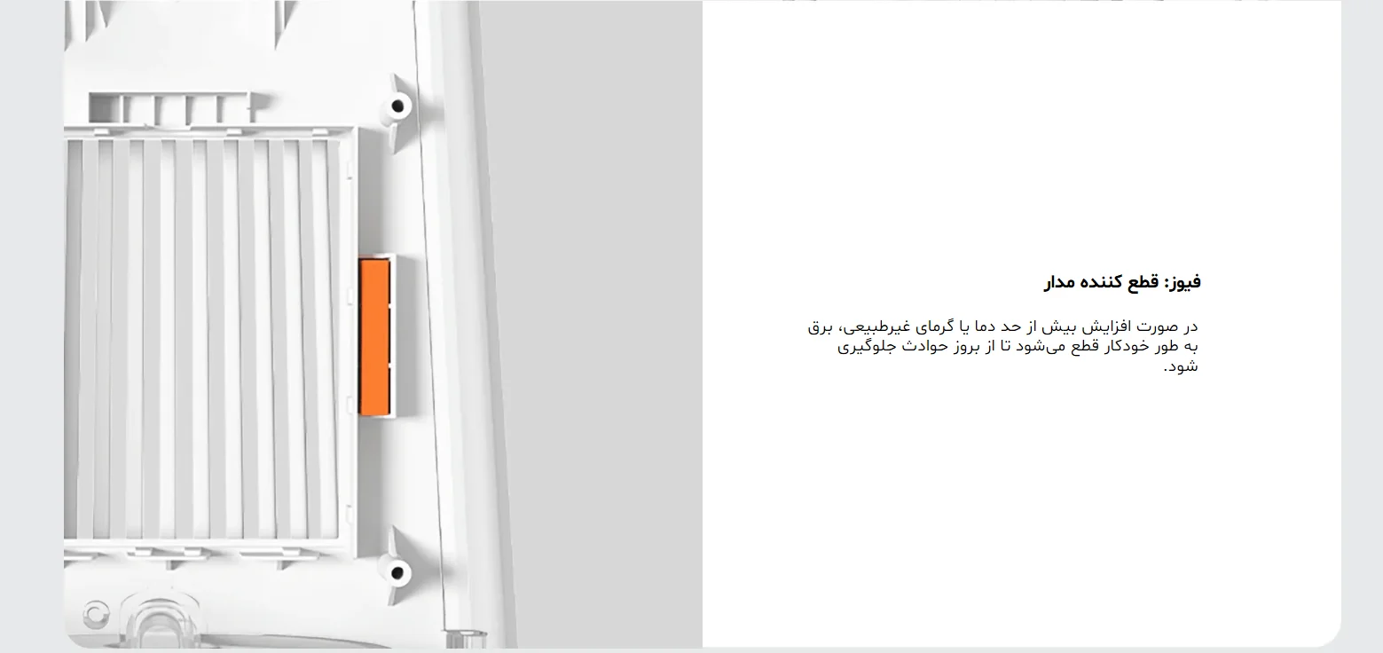 فیوز ایمنی قطع برق: در صورت افزایش غیرعادی دما، مدار برق را بهصورت خودکار قطع میکند.