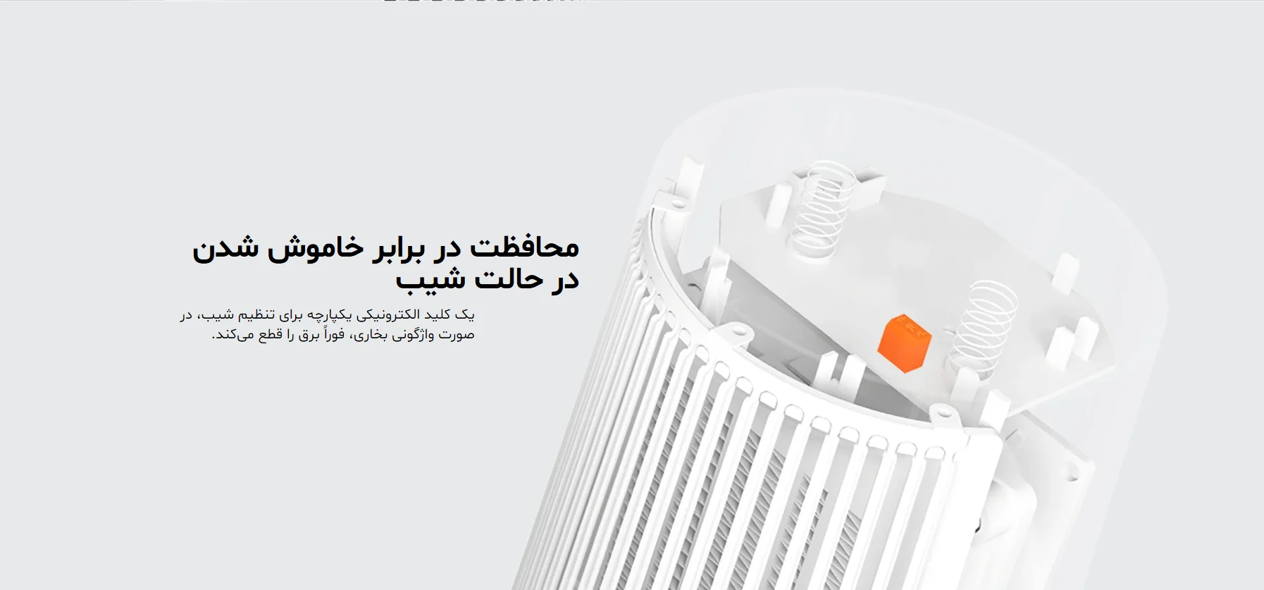 ایمنی در طراحی بخاری برقی شیائومی در اولویت است. این دستگاه از سه لایه محافظت بهره میبرد:
