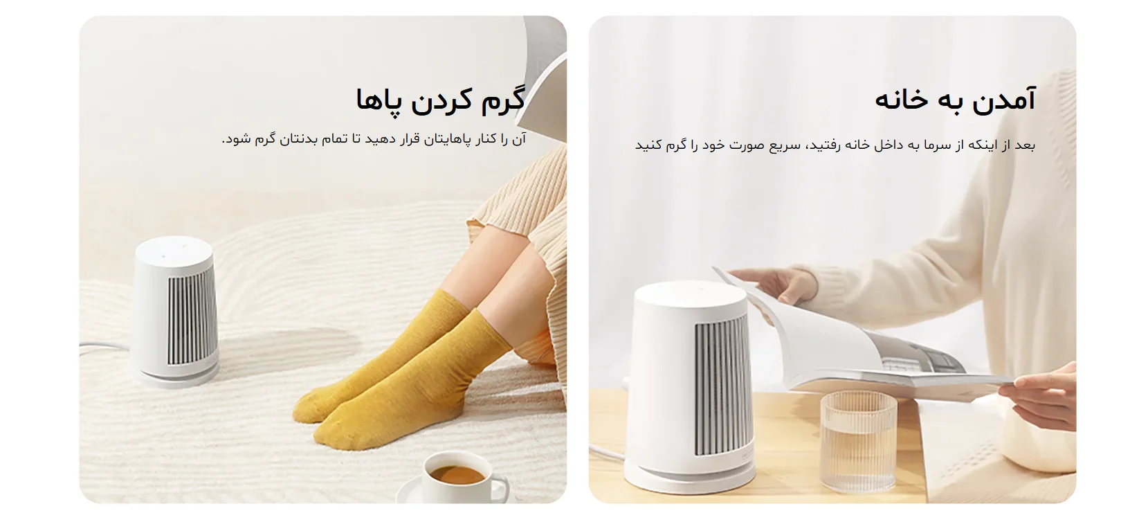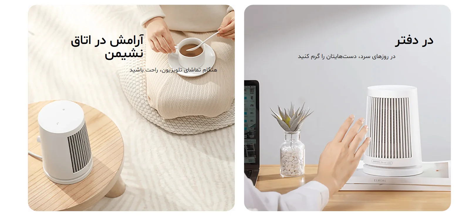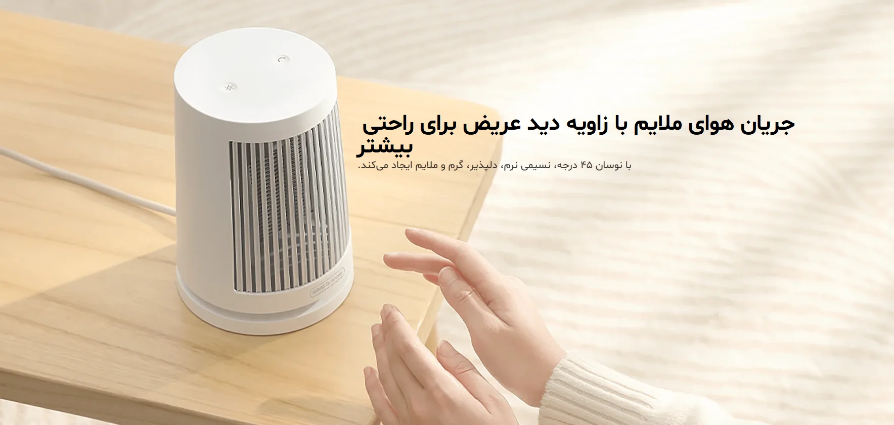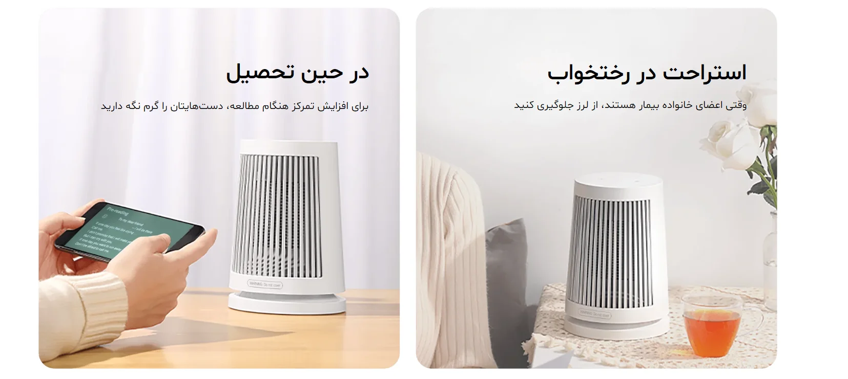 از میز تحصیل تا میز کار، از کنار تخت تا اتاق نشیمن — هر جا که نیاز به گرمای سریع دارید، این هیتر کوچک پاسخگو است.