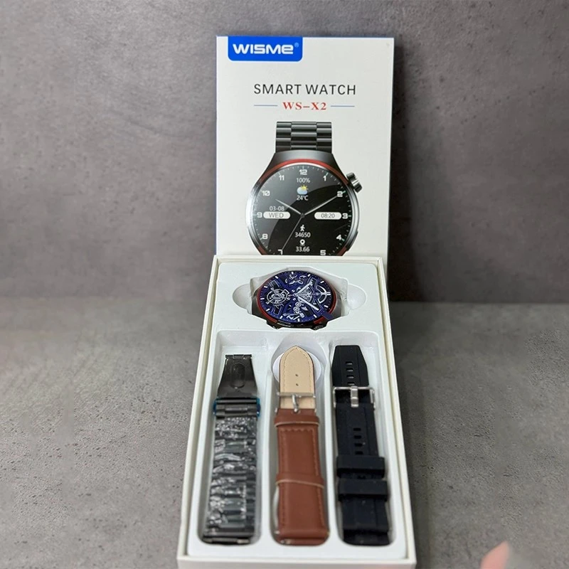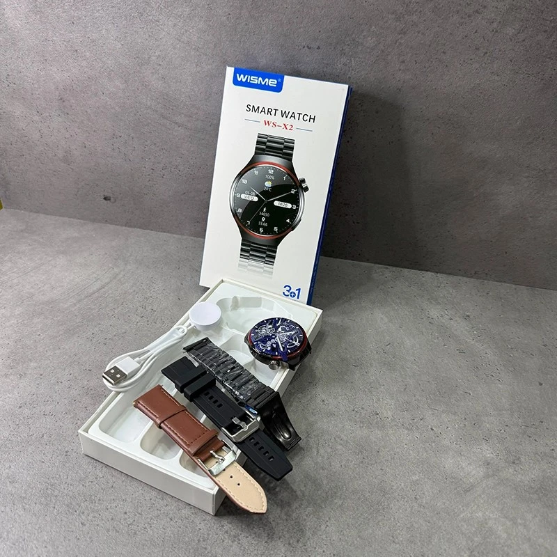 مشخصات اصلی ساعت هوشمند Wisme مدل WS-X2 شامل بدنه آلومینیومی در رنگهای مشکی و نقرهای با سایز ۴۶ میلیمتری است. این ساعت دارای بندهای سیلیکونی، فلزی و چرمی با قابلیت تعویض و قفل بند میباشد. مقاومت در برابر آب دارد و امکان نصب گلس روی نمایشگر فراهم است، اما از کاور محافظ پشتیبانی نمیکند. صفحهنمایش ۲.۱ اینچی AMOLED آن لمسی، رنگی و گرد بوده و از قابلیت نمایشگر همیشه روشن بهره میبرد. این مدل با پردازنده دو هستهای و سیستمعامل Watch OS عرضه شده و با دستگاههای iOS و اندروید سازگار است. از منو و اعلانات فارسی پشتیبانی میکند و دارای دستیار صوتی و ChatGPT است. امکان برقراری تماس مستقیم و از طریق بلوتوث را دارد و از بلوتوث و NFC پشتیبانی میکند، اما فاقد Wi-Fi، سیمکارت و امکان اتصال مستقیم به ایرپاد است. این ساعت قابلیت کنترل موسیقی و دوربین گوشی را دارد، اما امکان ذخیره موسیقی و ضبط صدا در آن وجود ندارد. سنسورهای اندازهگیری شامل ضربان قلب، اکسیژن و فشار خون، قند خون و نوار قلب است و قابلیت پایش خواب، گامشمار، کالریسنج، ارتفاعسنج و فشارسنج را ارائه میدهد. این مدل قطبنما ندارد اما از دستور حرکتی و خاموشی صفحه با کف دست پشتیبانی میکند و دارای یادآورهای سلامتی است. سایر ویژگیهای آن شامل کورنومتر، تایمر، ماشینحساب، رمزگذاری روی ساعت و امکان گذاشتن پسزمینه دلخواه میشود. این ساعت با طراحی مدرن، قابلیتهای ورزشی و سلامتی، مکالمه و پشتیبانی از زبان فارسی، گزینهای مناسب برای استفاده روزمره، رسمی و ورزشی است.همین الان میتونین از همین صفحه فروشگاه موبویا خریدکنین