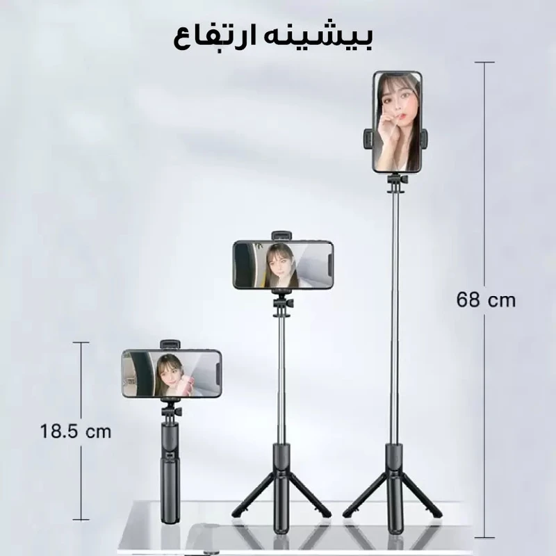 سه پایه و مونوپاد بلوتوثی مدل R1 یک انتخاب ایدهآل برای علاقهمندان به ثبت لحظات و عکاسی حرفهای با موبایل است. این محصول با بدنهای از استیل ضدزنگ، وزن سبک و طراحی جمعوجور، به راحتی در کیف یا حتی جیب شما قرار میگیرد. قابلیت بازشدگی تا طول ۷۰ سانتیمتر (۲۷.۶ اینچ)، گرفتن عکسهای گروهی و منظرهای را بسیار آسان میکند و در صورت جمعشدن، تنها ۱۹ سانتیمتر طول دارد. نگهدارنده گوشی مدل R1 برای موبایلهایی با عرض ۲.۹ تا ۴ اینچ مناسب است و ایمنی دستگاه را تضمین میکند.ویژگی مهم این مدل، وجود شاتر بلوتوثی با باتری قابل تعویض (CR1632) است که بدون نیاز به نصب برنامه، امکان عکسبرداری از راه دور را فراهم میکند. پایههای مقاوم و ارگونومیک آن، ثبات خوبی را برای عکاسی در محیطهای مختلف به کاربر میدهند. این سه پایه و مونوپاد، انتخابی بینقص برای سفر، مهمانی، طبیعتگردی و استفاده روزمره است و با ترکیب کیفیت، راحتی و عملکرد، تجربهای متفاوت از گرفتن سلفی و ثبت خاطرات میسازد