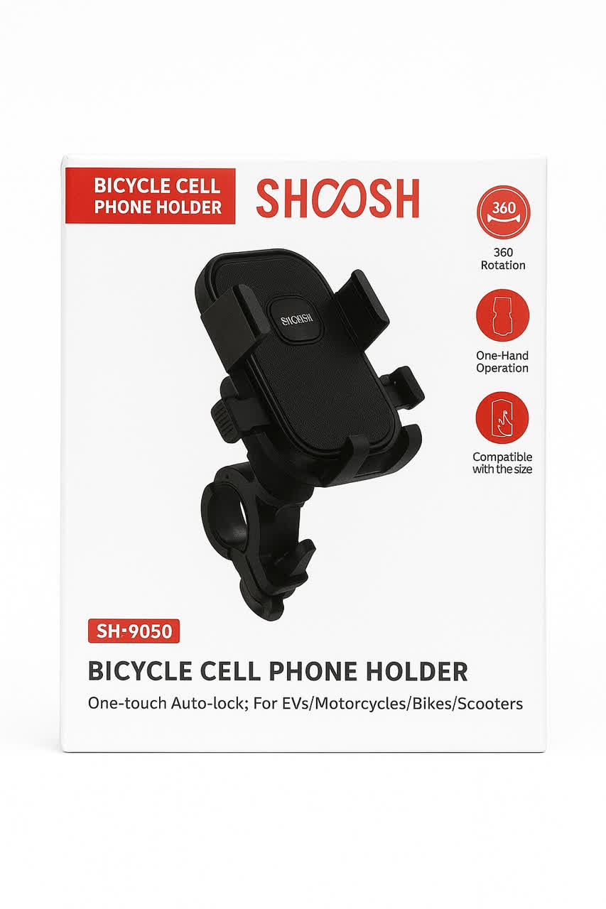 موتور و دوچرخه از جمله وسایل نقلیه ای است که برای گردش در طبیعت و مسیرهایی که امکان تردد با خودرو در آنها نیست، مورد استفاده قرار میگیرد. در بسیاری از مواقع، ما نیاز داریم که از مسیر یاب (جی پی اس) در هنگام دوچرخه سواری استفاده نماییم و یا دوست داریم از مسیر حرکت خود فیلمبرداری کنیم و حتی هنگام رکاب زدن، موسیقی دلخواه خود را گوش دهیم. پایه نگهدارنده گوشی مخصوص دوچرخه و موتور سیکلت شوش مدل SH9050 به ما این امکان را میدهد تا همه این موارد را تجربه کنیم و گوشی خود را در طول ماجراجویی های خود ایمن نگه داریم. پایه نگهدارنده گوشی همراه دوچرخه و موتور سیکلت شوش مدل SH9050 یک محصول خارق العاده است که می تواند جان راکبین این وسایل نقلیه را از حوادث جاده ای ناشی از بی توجهی بابت استفاده از گوشی تا میزان قابل توجه ای کاهش دهد. این هولدر از مواد بسیار مقاوم و از جنس ABS ساخته شده است. در قسمت پایین شاهد یک گیره با ثبات که از روش قدیمی ولی قابل اطمینان پیچ و مهره با پوشش سیلیکونی قابل جدا شدن استفاده می کند که برای ایجاد مکانیزم فیکس پایه روی فرمان وسیله نقلیه استفاده شده است. در ادامه یک مفصل با قابلیت چرخش ۳۶۰ درجه قرار گرفته که امکان استفاده از تلفن همراه در حالتهای افقی و عمودی را فراهم می نماید.